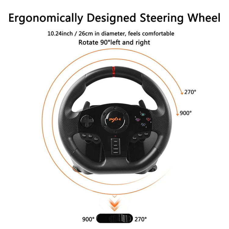 طراحی ارگونومیک دارای موتور لرزاننده دارای دکمه های قابل برنامه ریزی دارای ۳ سطح حساسیت قابل تنظیم دارای موتور مسابقه ای با موتور ارتعاش دوگانه دارای دکمه فیزیکی برای تغییر ۲۷۰ درجه و ۹۰۰ درجه (۹۰۰ درجه مناسب بازی های راننده ، ۲۷۰ درجه مناسب بازی های مسابقه ای)