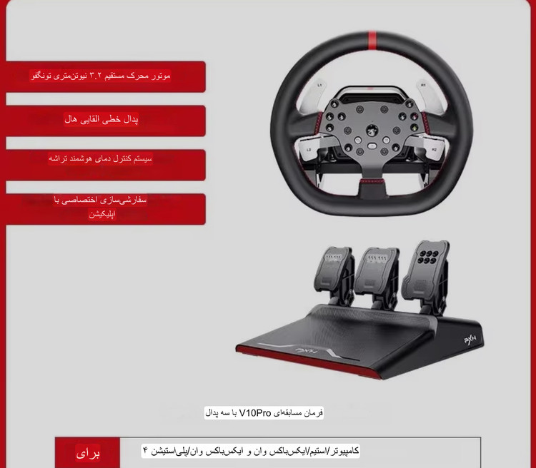 فرمان بازی حرفه ای PXN - V10 PRO سری جدید ۲۰۲۵ سه پدال با فرمان دی کات