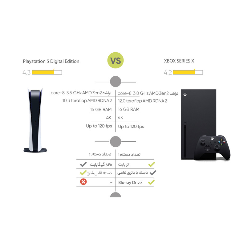 کنسول بازی سونی مدل Playstation 5 Digital Edition ظرفیت 825 گیگابایت یکی از محصولات بسیار حرفهای بوده که میتوانید در بازیهای کامپیوتری آن را تجربه کنید. این دستگاه یکی از بهترین و پرطرفدارترین کنسولها بازی در دنیا است که توسط کمپانی سونی ارائه شده است. این کنسول با اعمال تغییراتی ظاهری و سختافزاری طراحی شده است. درایوی در این مدل وجود ندارد و شما باید بهصورت دیجیتال بازیها را در آن داشته باشید. خروجی تصویر آن، از فرمت 4K پشتیبانی میکند. پردازشگر اصلی و گرافیکی این مدل تغییر اساسی کرده و از سری 4 قدرت بالاتری دارد. همچنین Playstation 5 Digital Edition بهواسطه پورت LAN یا اتصال بیسیم Wi-Fi به اینترنت متصل میشود و امکانات متعددی را برای کاربران فراهم میکند که بتوانند با عضویت در شبکهی PSN و پرداخت هزینه، بازیهای مورد نظر خود را خریداری و دانلود کنند یا اینکه به صورت آنلاین با دوستان خود بازی کنند. پورت USB از نوع Type-C به آن اضافه شده است. دستهها از طریق بلوتوث به کنسول متصل میشوند و برد مورد نیاز را پشتیبانی میکند. خروجی تصویر، پورت HDMI است و کیفیت 4K را پشتیبانی میکند. این مدل از حافظهی داخلی 825GB بهرهمند است.