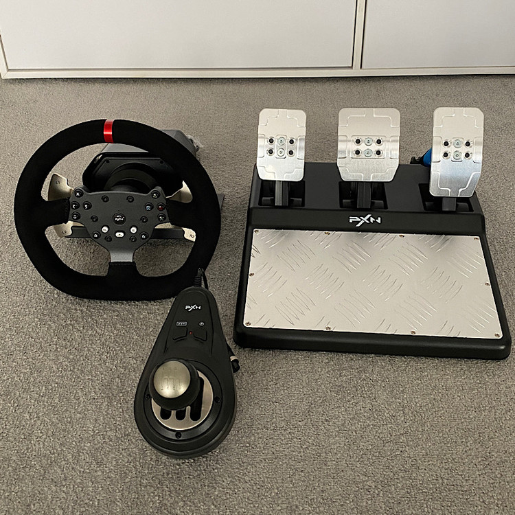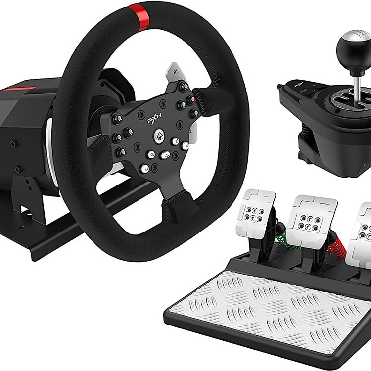 PXN V10 Steering Wheel with Real Force Feedback Driving Wheel and 6+1 Speed Shifter and Adjustable Magnetic Pedals Stainless Steel Paddle Shifters for PS4 Xbox Series XS PC Xbox One